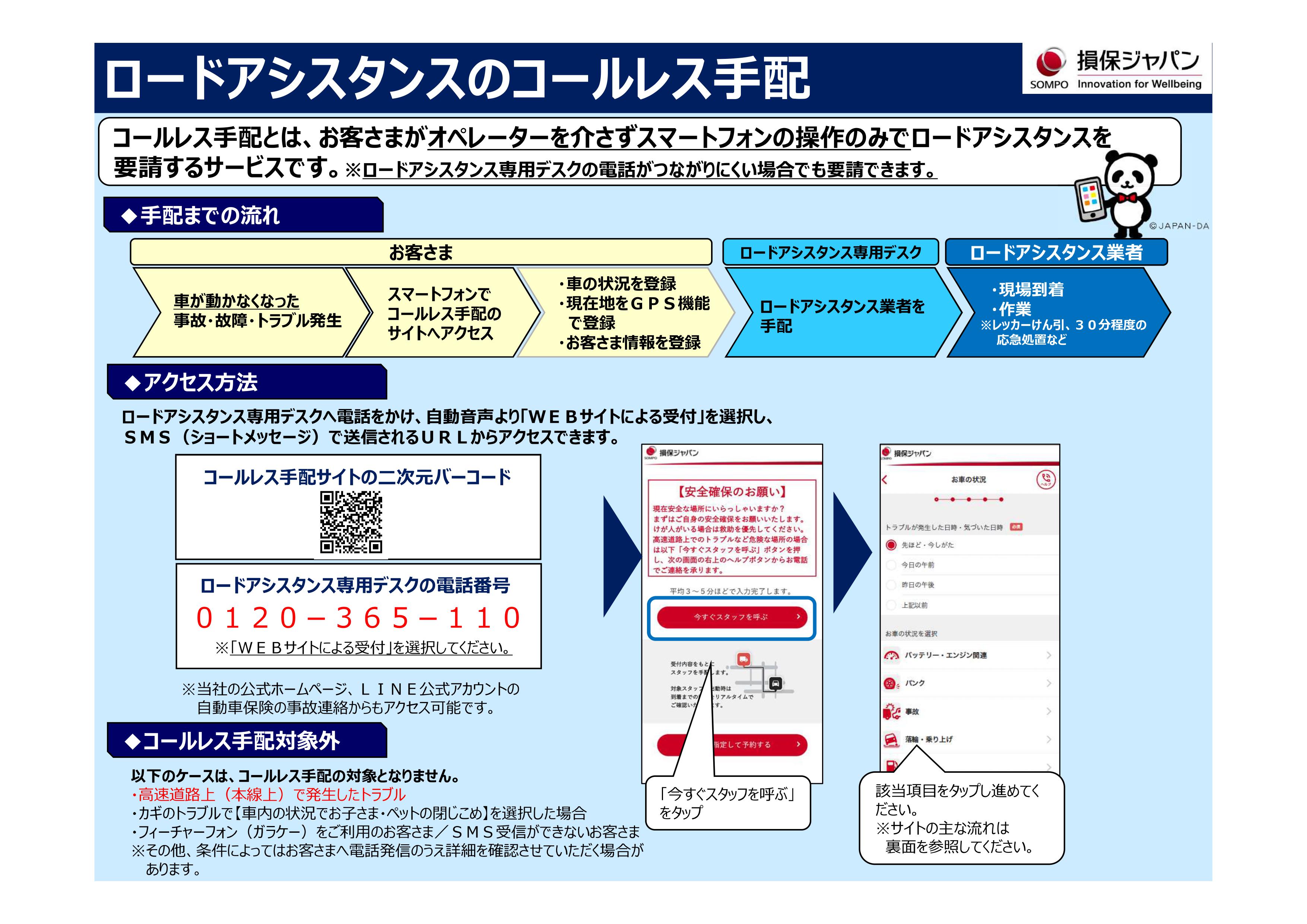 (上記のロードアシスタンス専用デスクの電話が繋がりにくい場合にもご利用下さい)